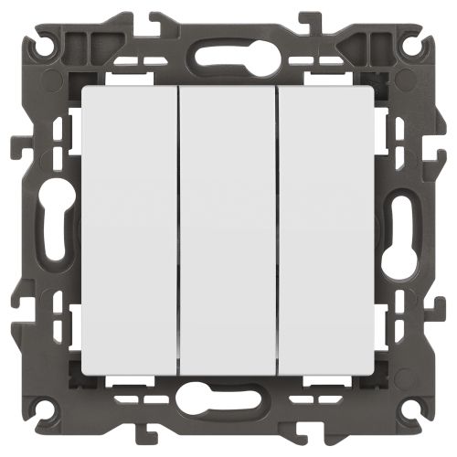 Выключатель 3-клавишный серии Эра Elegance цвет белый матовый 14-1107-01М. Характеристики 10А 250В. Винтовой зажим. Рамки приобретаются отдельно.