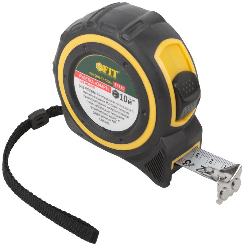 Рулетка Смарт 10мх25мм калибр. лента; нейлон. покрытие; магн. крючок; прорезиненный корпус FIT 17320