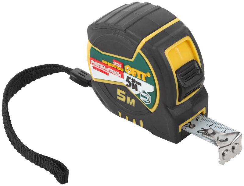 «Гранд». Калиброванная лента класс II, двойной стопор, магнитный крючок. Материал: стальная лента с нейлоновым покрытием, прорезиненный корпус из ударопрочного ABS пластика. Упаковка: пластиковый подвес.
