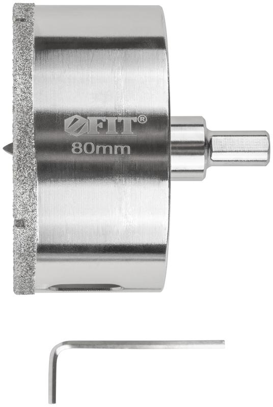 Коронка кольцевая алмазная по керамограниту камню и кафелю 80х70мм с центровочным сверлом FIT 16228