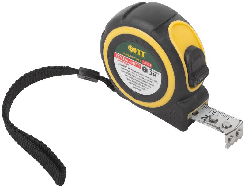 «Смарт». Калиброванная лента класс II, магнитный крючок. Материал: стальная лента с нейлоновым покрытием, прорезиненный корпус из ударопрочного ABS пластика. Упаковка: пластиковый подвес.