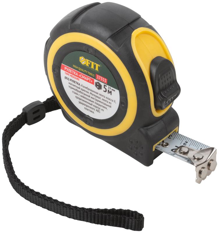 «Смарт». Калиброванная лента класс II, магнитный крючок. Материал: стальная лента с нейлоновым покрытием, прорезиненный корпус из ударопрочного ABS пластика. Упаковка: пластиковый подвес.