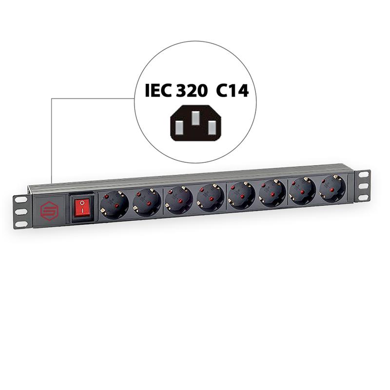 Блок розеток 8-м 16А горизонт. евростандарт для 19дюйм шкафов выключатель гнездо под шнур корпус ABS SYSMATRIX PD 0802.000