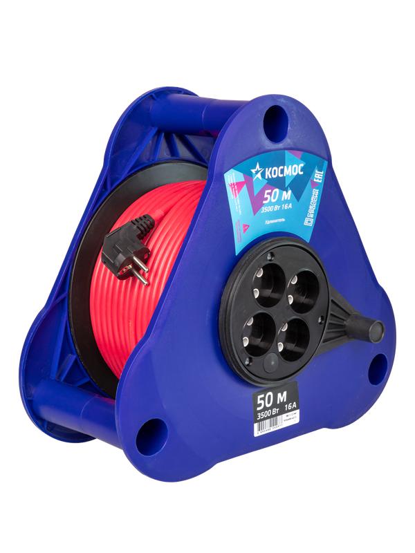 Удлинитель на треугольной катушке 4х50м без заземл. 16А IP44 3.5кВт ПВС 2х2.5 УКП КОСМОС YKTKsm50m-4g(2.5)
