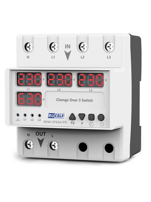 Реле напряжения с выбором фаз 3в1 с автоматическим переключателем RUCELF SRW-3F63A-PS