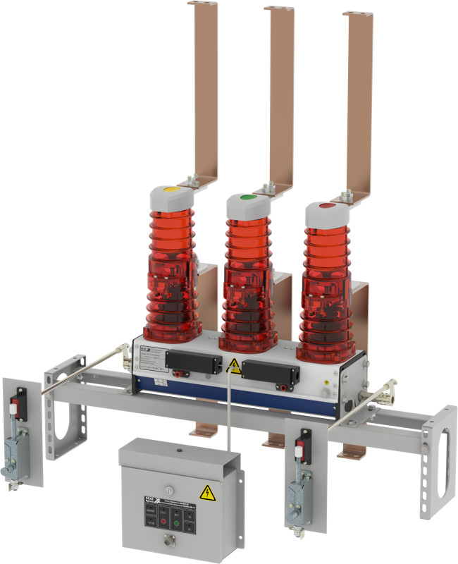Комплект адаптации для ячеек КСО-266, КСО-272, КСО-285 с применением электро-механической блокировки. 1 - Опорная рама вакуумного выключателя; 2 - Кронштейн; 3 - Кнопка; 4 - Фланец кнопки; 5 - Втулка; 6 - Рычаг; 7 - Вилка; 8 - Узел блокировочный OptiMat Bk1 ; 9 - Уголок блокирующий защелку привода главных ножей шинного и линейного разъединителя; 10 - Тяга; 11 - Алюминиевые Шина АД31Т 6х60.