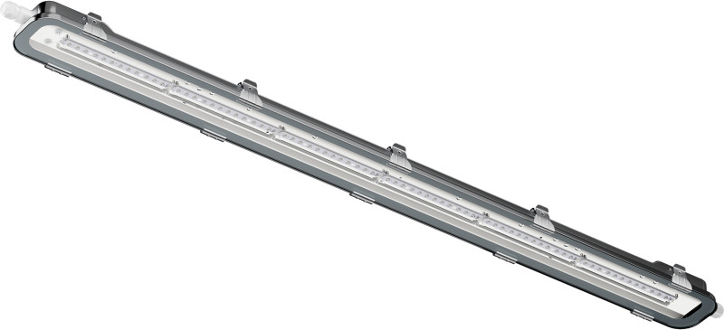 Штампованный корпус из нержавеющей стали марки AISI304 позволяет эксплуатировать светильник в тяжелых условиях. Силиконовый уплотнитель и клипсы жесткой фиксации надежно притягивают стекло к корпусу, что обеспечивает степень защиты IP66/IP67. Кабельный ввод с интегрированной клеммной колодкой позволяет подключать светильники без разбора корпуса и упрощает монтаж светильников в линию.