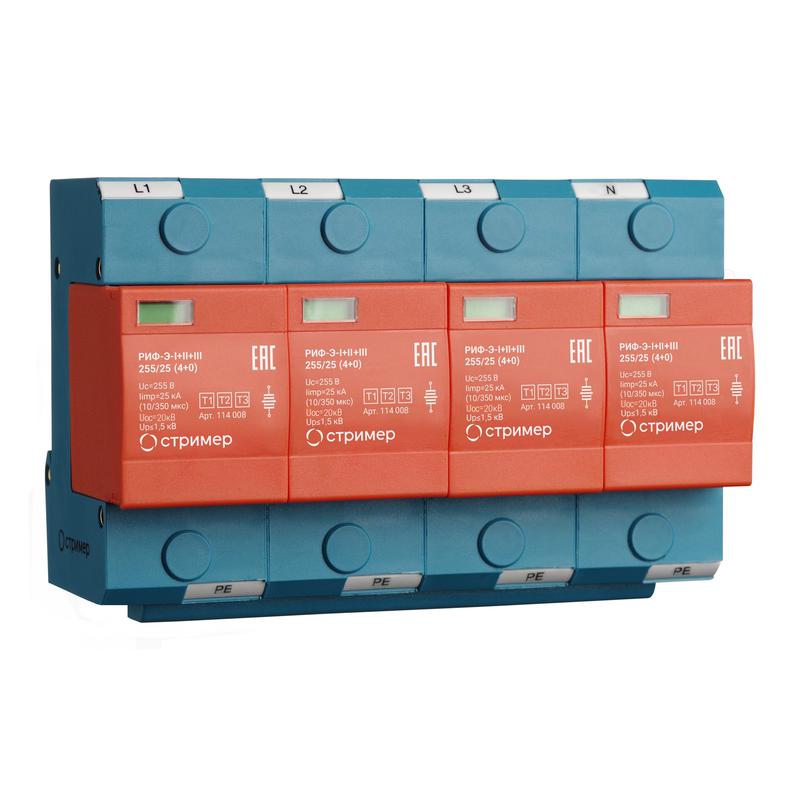 Устройство защиты от импульсных перенапряжений РИФ-Э-I+II+III 255/25 (4+0) Стример 114008