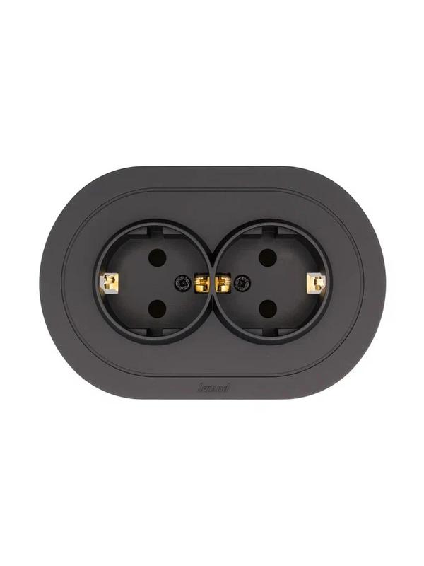 Розетка 2-м СП OSEN IP44 с заземл. ПБТ круглая черн. бархат LEZARD 744-4200-127BPCH
