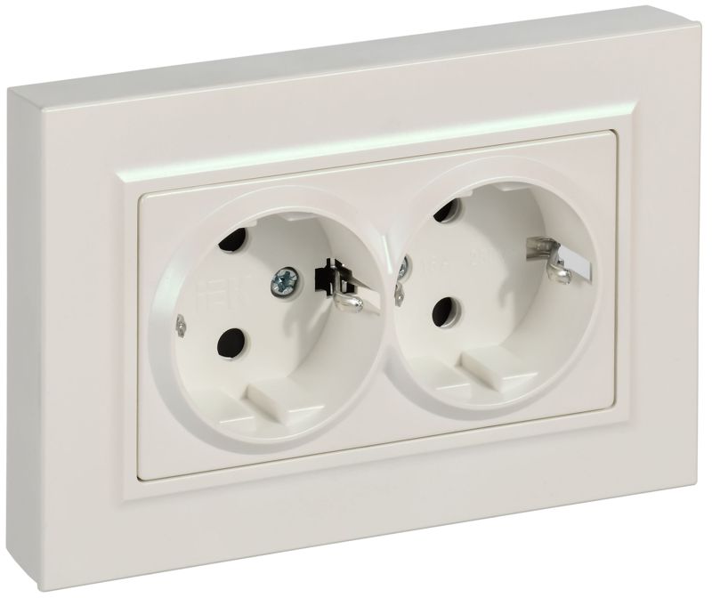 Розетка 2-м СП BRITE РСшПл12-3-БрЖ 16А в сборе с заземл. защ. шторки плоская жемчуж. IEK BR-R28-16-K36-F