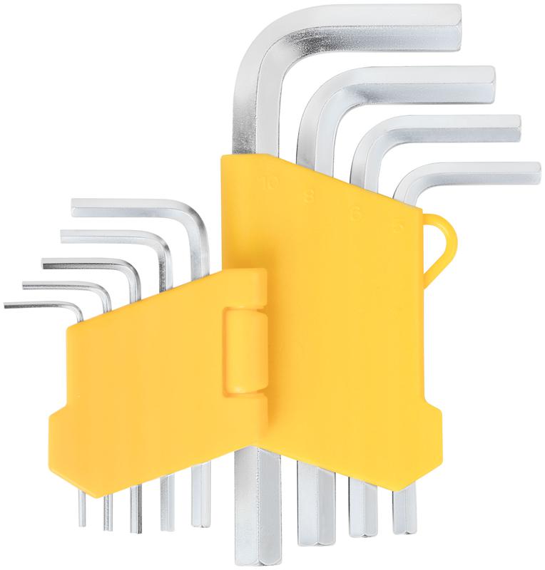 Для работы с крепежными элементами. Закалка ключей до твердости 50-54 HRC обеспечивает высокую износостойкость. Хромированное антикоррозийное покрытие. Две рабочие стороны повышают эффективность работы в труднодоступных местах. 9 размеров в наборе способствуют выполнению широкого спектра задач. Эргономичный складной пластиковый держатель с подвесом позволяет организованно хранить ключи. Маркировка на ключах и держателе облегчают идентификацию.