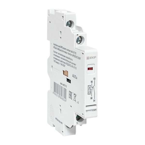 Дополнительный аксессуар для автомата пуска (защиты) двигателя. Блок с двумя контактами, монтируемый на АПД. Один контакт — аварийный, второй — вспомогательный. Контакты механически связаны с главными силовыми контактами АПД. Когда автомат включен, меняется положение и этих дополнительных контактов (нормально-разомкнутые (НО/NO) замыкаются, нормально-замкнутые (НЗ/NC) размыкаются, и наоборот). Аварийный контакт (1НЗ) срабатывает только при отключении защитой. Вспомогательный (1НО) работает как обычный доп. контакт. Устанавливаются на корпус АПД сбоку (слева) путем защелкивания. Подключаются к низковольтным цепям управления с помощью винтовых клемм. Используется для АПД-32 и GV2P.