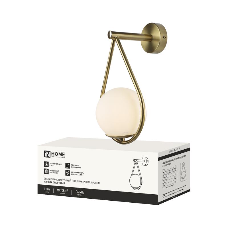 Светильник AURORA DROP-G9-LT 1хG9 настен. под лампу плафон матов./корпус латун. IN HOME 4690612063720