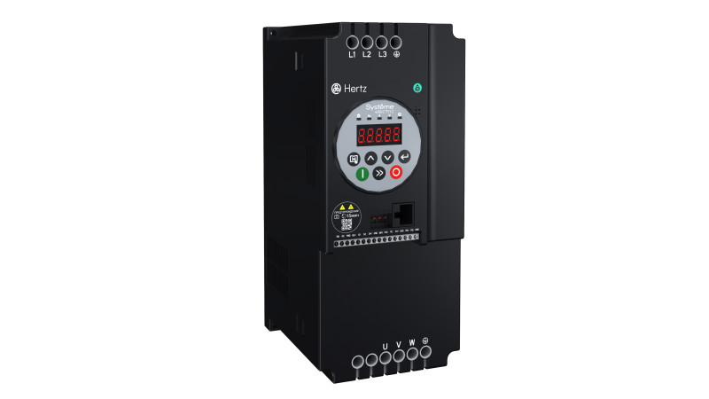 Преобразователь частоты серии SystemeVar Hertz типа STV050 для насосных и вентиляторных применений (версия “SVPM” для синхронных электродвигателей). Номинальные характеристики (G-тип): Un = 3Ф 400В; Pn = 11 кВт; In = 25 А. Перегрузочная способность (G-тип): 150% в течение 60 с, 180% в течение 3с (время цикла = 300 с). Выходная частота: до 599 Гц. Диапазон питающего напряжения: 3Ф 380 (-15%) ~ 440В (+10%). Встроенная (несъёмная) LED панель оператора. Встроенный-ЭМС фильтр (Класс С3, согл. EN 61800-3). Коммуникационный протокол: Modbus RTU. Кол-во входов/выходов: 4DI, 1AI, 1DO, 1RO, 1AO. Степень защиты: IP20. Покрытие плат (Класс 3С2, согл. EN 60721-3-3). Температура окружающей среды: от -20°C до +50°C (до +40°C без ухудшения номинальных характеристик). Скалярное управление, векторное управление (без обратной связи по скорости). Функции для насосных и вентиляторных применений. Без пожарного режима с функцией контроля целостности кабеля двигателя. Монтаж “бок-о-бок” (минимальное расстояние между соседними ПЧ: 50 мм). Типоразмер D. ШxВxГ (мм): 106х240х146. Вес: 2,2 кг.