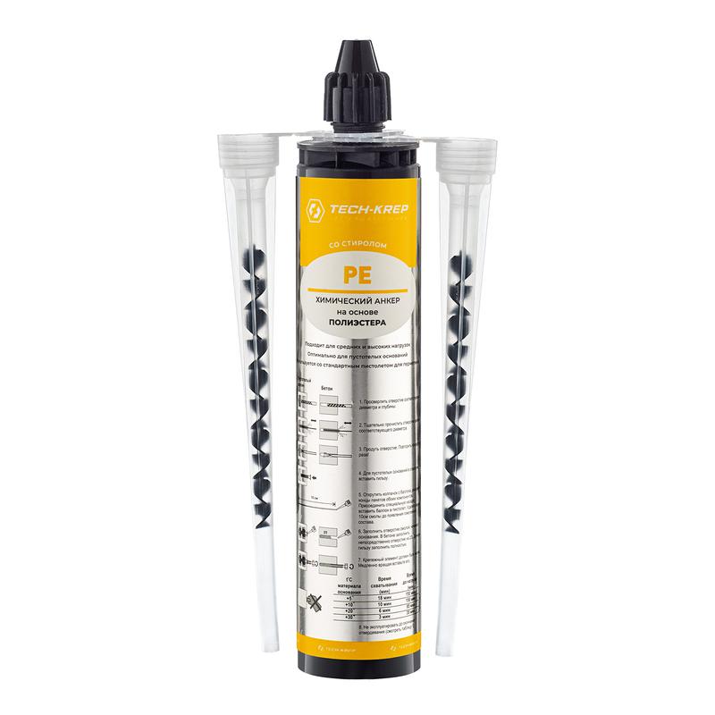 Особенности: подходит для средних нагрузок. Химический анкер PE на основе полиэстеровой смолы устойчив к химическим нагрузкам и обладает большим сроком службы до 100 лет. Подходит для применения в сухом и водонасыщенном бетоне, не создает предварительного напряжения. Идеально подходит для пустотелых оснований. Используется со стандартным пистолетом для герметика.
