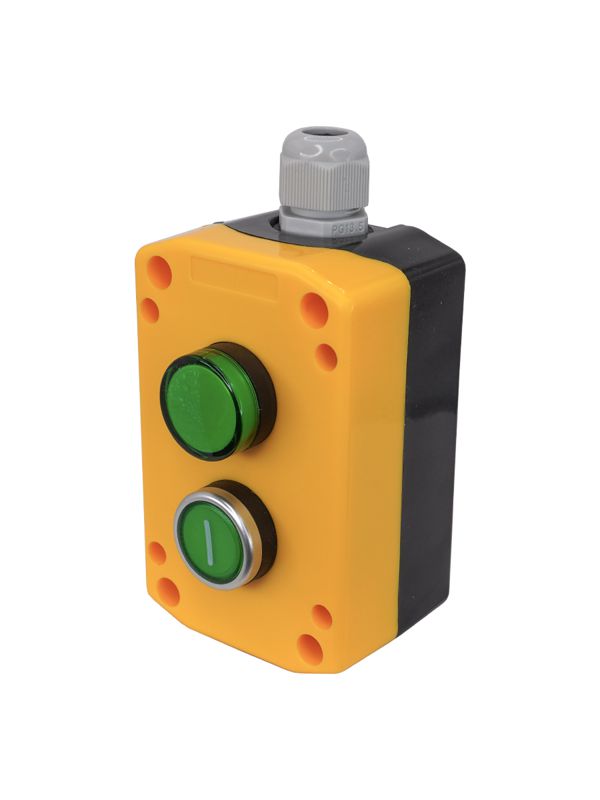 ПКУ22-21V1B-65У1, 1 зелёный цилиндр "I" (НО) , лампа зелёная 24В AC/DC, пост управления, IP65 (ЭТ)