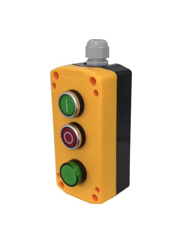 ПКУ22-33V1M-65У1, 1 зелёный цилиндр "I" (НО), 1 красный цилиндр "O" (НЗ), лампа зелёная 220В AC, пост управления, IP65 (ЭТ)