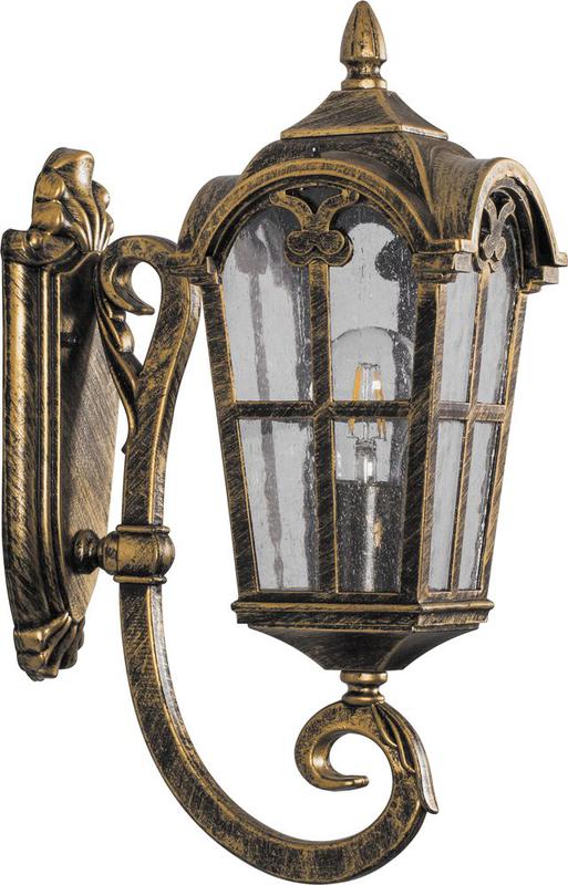Светильник садово-парковый, серии «Кастелло», (НБУ) FERON PL102 60W, E27, 230V, IP44, цвет черное золото, 4-х гранник, на стену вверх, 150*250*480мм