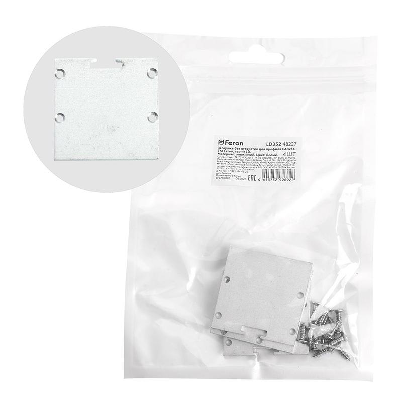 Заглушка LD352 для профиля CAB256 без отверст. (уп.4шт) FERON 48227