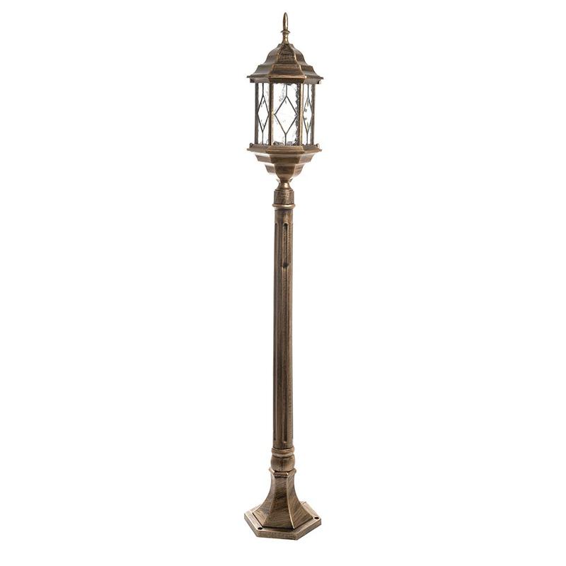 Светильник садово-парковый, серии «Сорренто», (НТУ) FERON PL126 60W, E27, 230V, IP44, цвет черное золото, 6-и гранник, столб, 160*160*1150мм