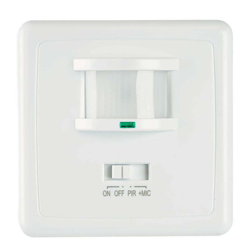 Датчик движения и освещенности FERON SEN1A инфракрасный, встраиваемый, IP20, 230V, 1200W, расстояние обнаружения 12м, угол обнаружения 140°, с регулировкой освещенности, времени задержки, чувствительности микрофона, цвет белый, 78*54*78мм