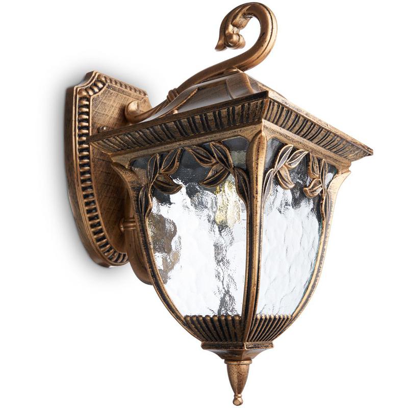 Светильник садово-парковый, серии «Афина», (НБУ) FERON PL4072 60W, E27, 230V, IP44, цвет черное золото, 4-х гранник, на стену вниз, 180*245*360мм