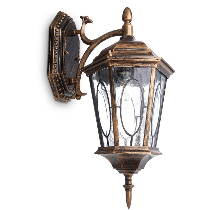 Светильник садово-парковый, серии «Рим», (НБУ) FERON PL161 60W, E27, 230V, IP44, цвет черное золото, 6-и гранник, на стену вниз, 200*250*425мм