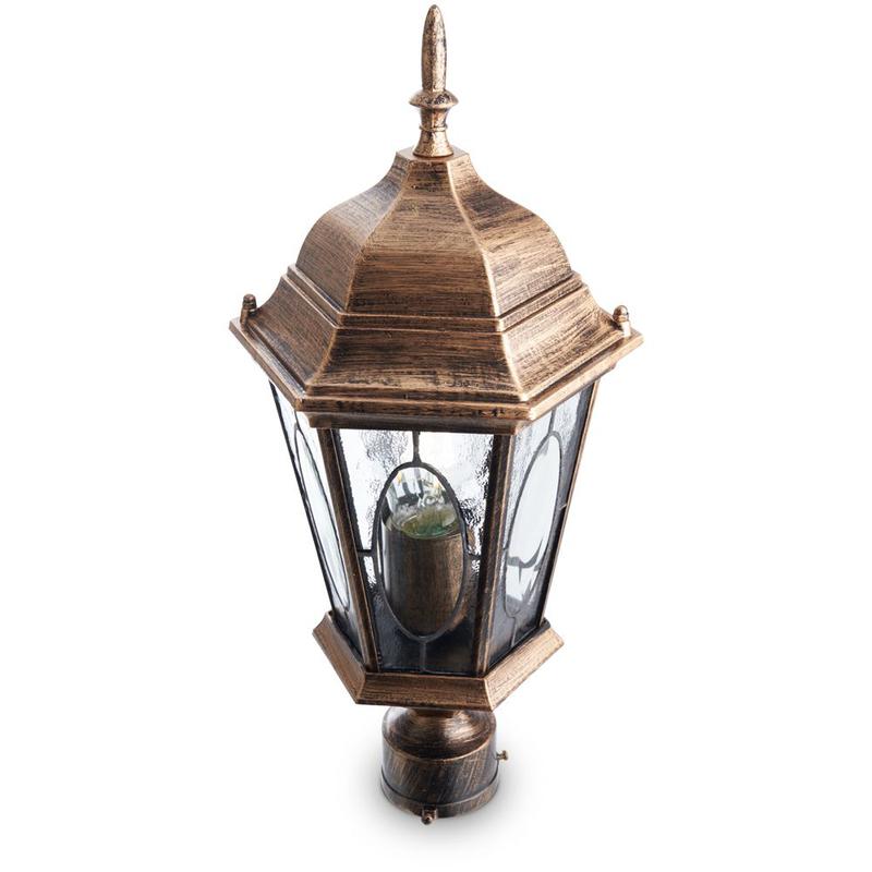 Светильник садово-парковый, серии «Рим», (НТУ) FERON PL162 60W, E27, 230V, IP44, цвет черное золото, 6-и гранник, на столб, 205*175*440мм