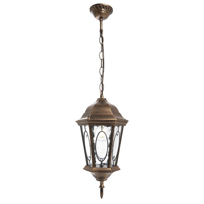 Светильник садово-парковый, серии «Рим», (НСУ) FERON PL164 60W, E27, 230V, IP44, цвет черное золото, 6-и гранник, на цепочке, 205*175*895мм