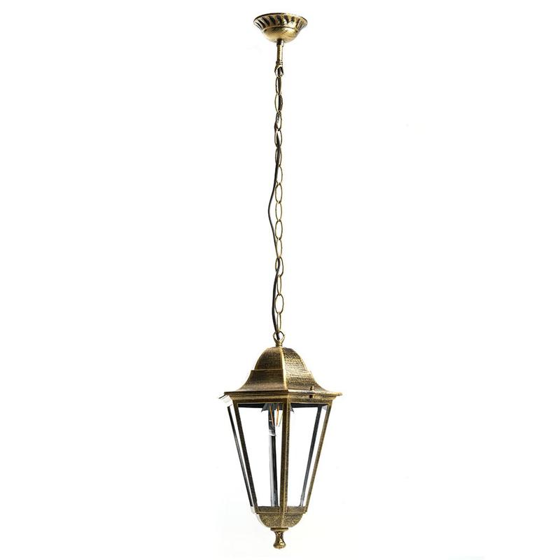 Светильник садово-парковый, серии «Классика», (НСУ) FERON 6205/PL6205 100W, E27, 230V, IP44, цвет черное золото, 6-и гранник, на цепочке, 220*220*850мм