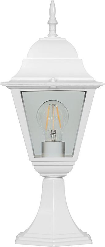 Светильник садово-парковый, серии «Классика», (НТУ) FERON 4104/PL4104 60W, E27, 230V, IP44, цвет белый, 4-х гранник, на постамент, 150*150*410мм