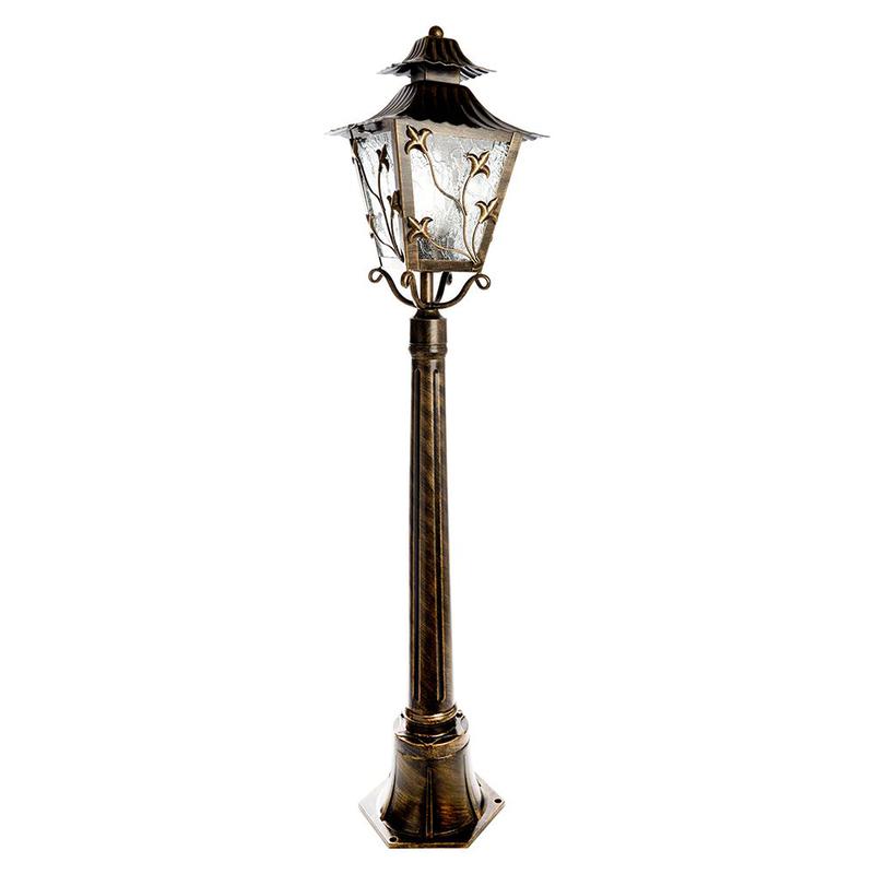 Светильник садово-парковый, серии «Палермо», (НТУ) FERON PL636 60W, E27, 230V, IP44, цвет черное золото, 4-х гранник, столб, 224*224*1130мм