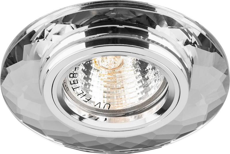 Светильник потолочный встраиваемый (ИВО) FERON DL8160-2/8160-2, под лампу MR16 G5.3, прозрачный хром, круг, 95*95*23 мм, монтажный диаметр 60мм, корпус стекло, неповоротный