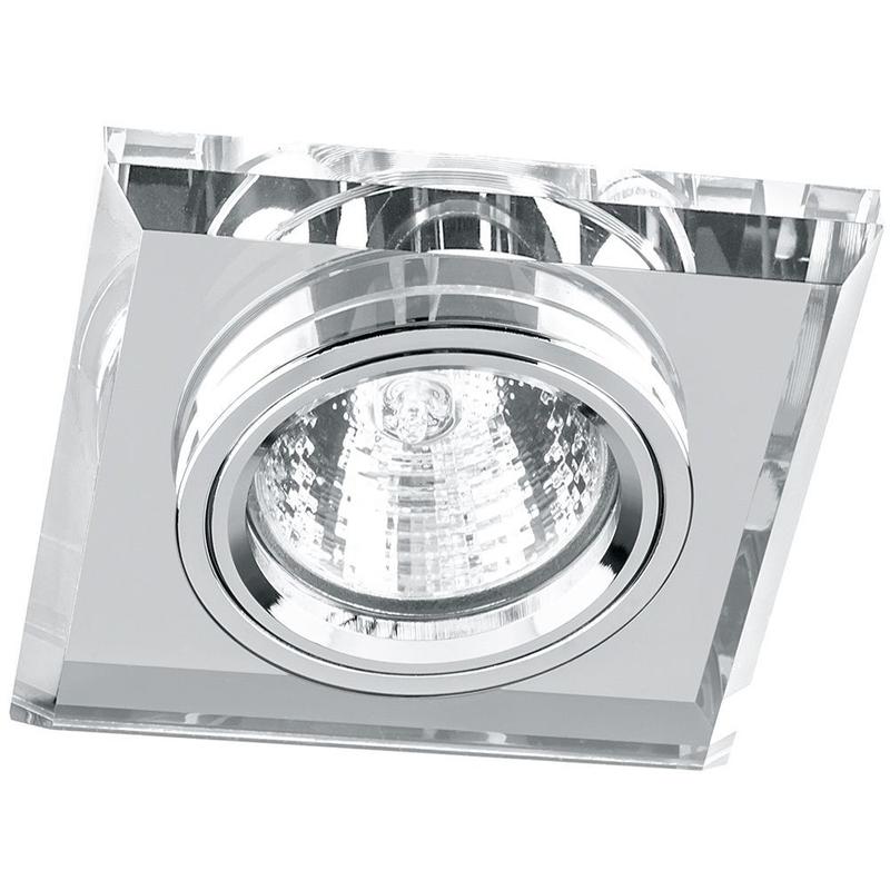 Светильник потолочный встраиваемый (ИВО) FERON DL8170-2/8170-2, под лампу MR16 G5.3, прозрачный хром, квадрат, 90*90*23 мм, монтажный диаметр 60мм, корпус стекло, неповоротный
