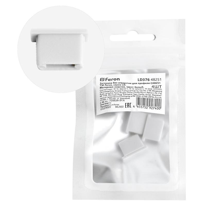 Заглушка LD376 для профиля CAB251 без отверст. (уп.4шт) FERON 48251