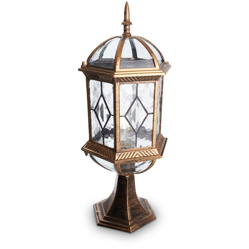Светильник садово-парковый, серии «Венеция», (НТУ) FERON PL171 60W, E27, 230V, IP44, цвет черное золото, 6-и гранник, на постамент, 205*205*500мм