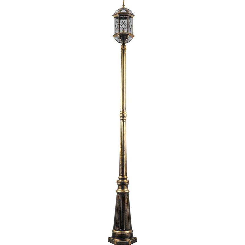 Светильник садово-парковый, серии «Венеция», (НТУ) FERON PL176 60W, E27, 230V, IP44, цвет черное золото, 6-и гранник, столб, 225*225*2100мм