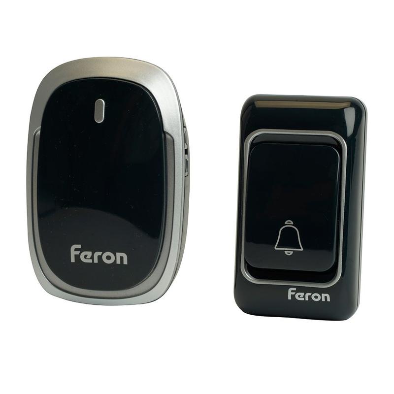 Звонок дверной беспроводной FERON E-383, 38 мелодий, дальность действия 100м, цвет чёрный/серебро, регулировка громкости - есть, шифрование сигнала - есть; 94*62*27 мм, КНОПКА: IP44, 12V 23A*1 (в комплекте) , раб.t -20..+60°С , размер кнопки 80*23*45мм