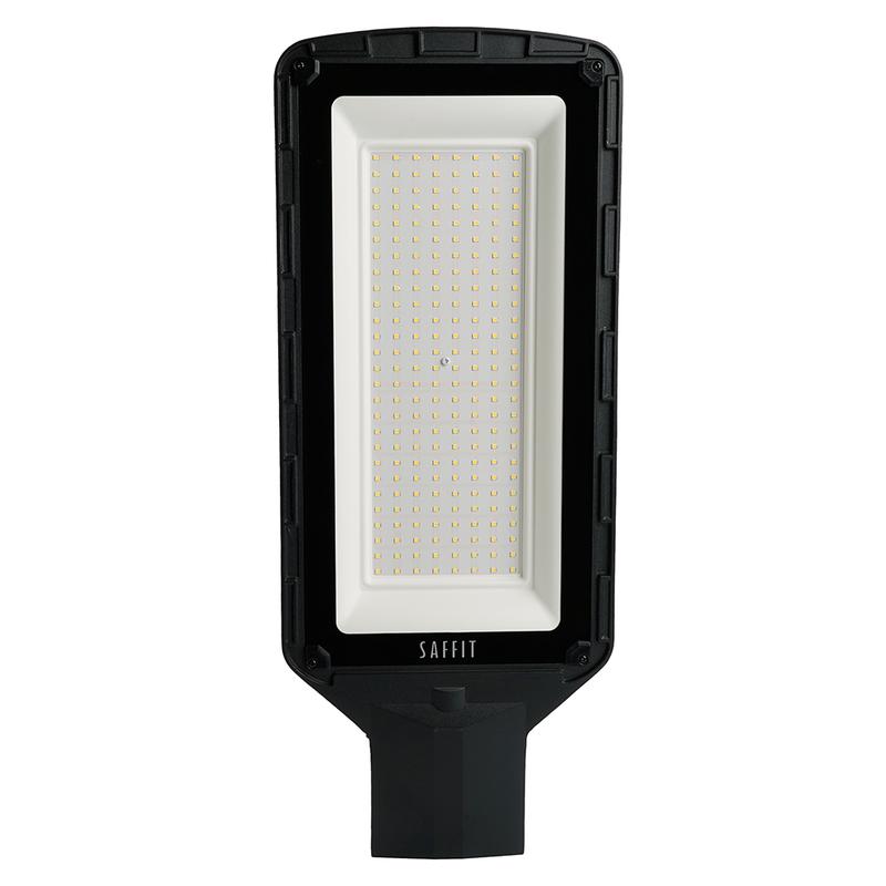 Уличный светильник консольный светодиодный, на столб (ДКУ) SAFFIT SSL10-150, 150W, 5000К (холодный белый), 230V/50Гц, 15000Lm, IP65, угол рассеивания 120°, 72LED*SMD2835 , класс защиты 1, раб.t -40°C - +45°C, цвет чёрный, корпус алюминий, стекло, 201*64*537мм,