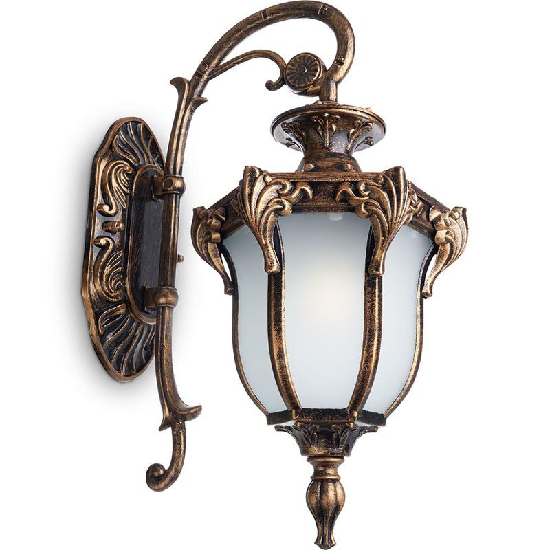 Светильник садово-парковый, серии «Флоренция», (НБУ) FERON PL4042 60W, E27, 230V, IP44, цвет черное золото, 6-и гранник, на стену вниз, 270*175*410мм