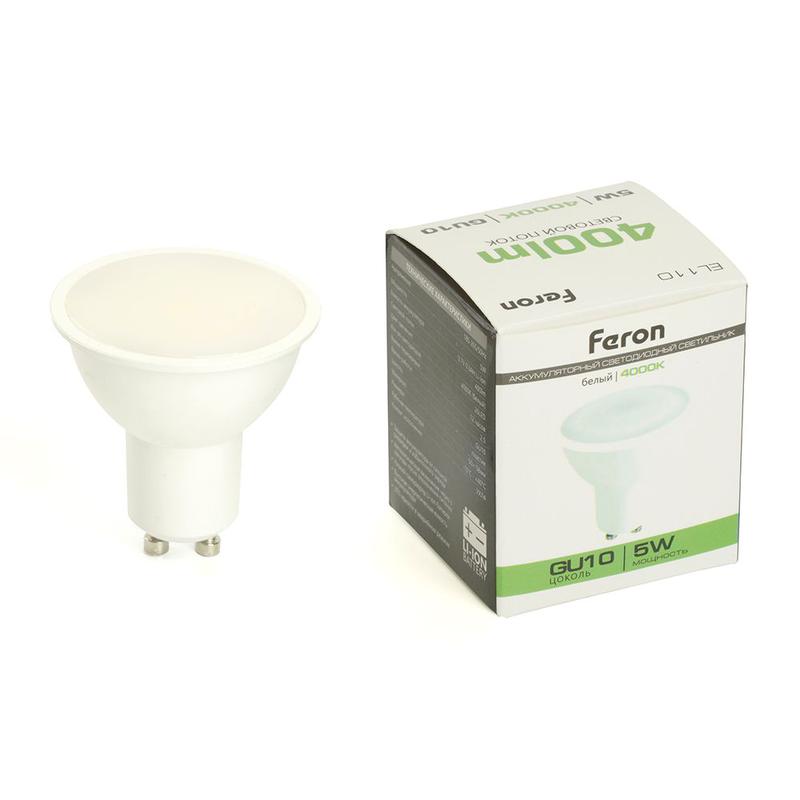 Светильник аккумуляторный FERON EL110 с цоколем, 26LED/белый, 185-265V, IP20, аккумулятор 3,7/300mAh/Li-Ion (литий-ионный), количество режимов 1, время зарядки 12 часов, время работы 2,5, цвет белый, 50*50*58мм