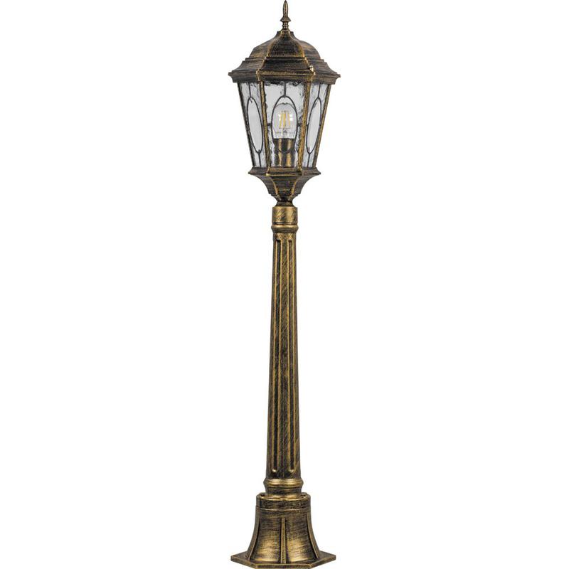 Светильник садово-парковый, серии «Рим», (НТУ) FERON PL155 60W, E27, 230V, IP44, цвет черное золото, 6-и гранник, столб, 240*240*1225мм
