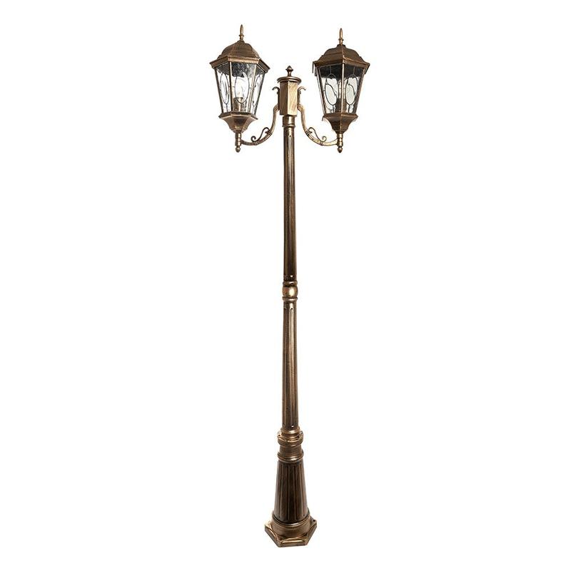 Светильник садово-парковый, серии «Рим», (НТУ) FERON PL157 60W, E27, 230V, IP44, цвет черное золото, 6-и гранник, столб, 240*630*2200мм