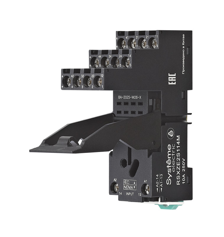 Розетка для миниатюрных электромеханических реле типа RSXM 4СО, номинальный ток 10А, номинальное напряжение 250В. Электромеханические реле SystemeSig EMR находят широкое применение в технологическом оборудовании и машинах, шкафах распределния и управления, промышленных предприятиях, объектах инфраструктуры, гражданском строительстве.