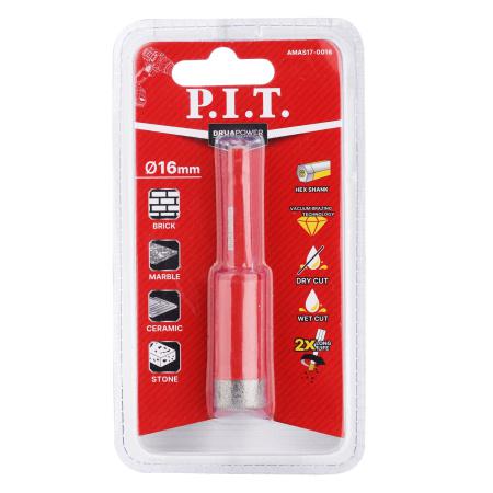 Коронка алмазная по керамограниту 16мм HEX сухое/мокрое сверление вакуумная пайка P.I.T. AMAS17-0016