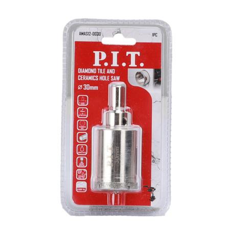 Коронка алмазная по стеклу и керамике 30х40мм хвостовик HEX направляющее сверло сухое/мокрое P.I.T. AMAS12-0030