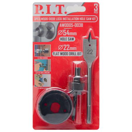 Набор для установки врезных замков коронка 54мм; сверло 22мм; адаптер (3 предмета) P.I.T. AWOD05-003B