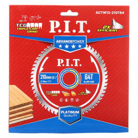 Диск пильный по дереву ADVANCE 210х30х2.2мм 64T Carbide зуб TCG 15град. P.I.T. ACTW12-210T64