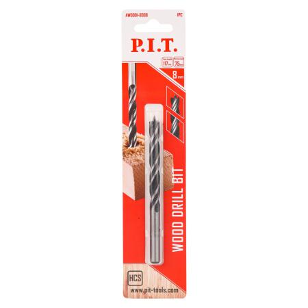 Сверло по дереву спиральное 8х117мм круглый хвостовик центр. шип P.I.T. AWOD01-0008