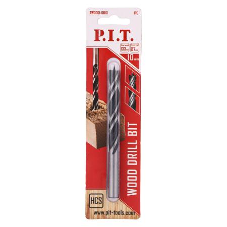 Сверло по дереву спиральное 10х133мм круглый хвостовик центр. шип P.I.T. AWOD01-0010